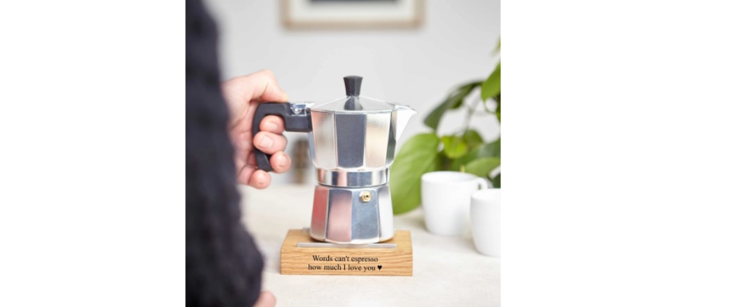 Include a custom moka pot stand to make this gift feel even more personal!