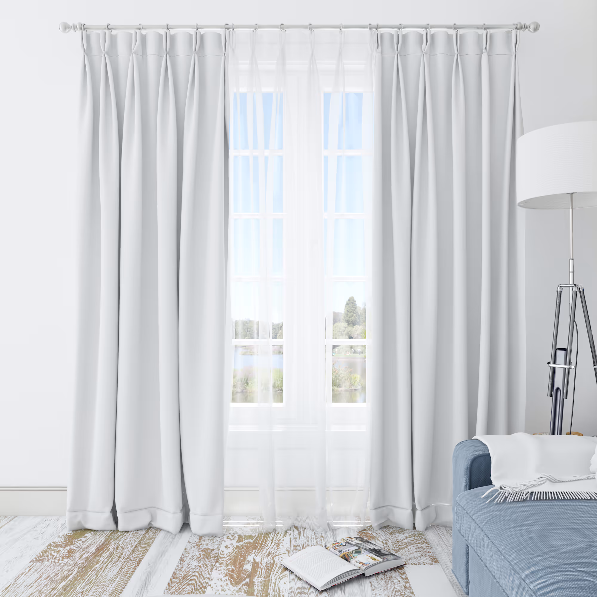 Translucent white curtains let in more natural light when they’re closed, and many interior designs include white features in their designs to make spaces appear larger.